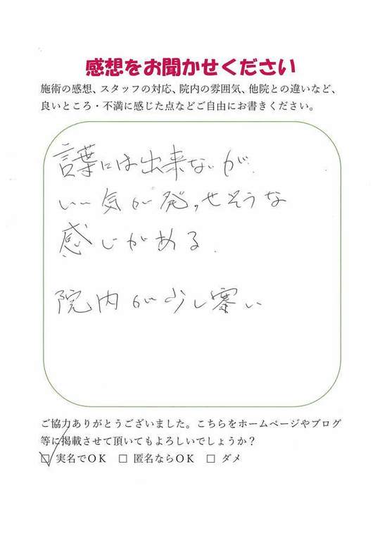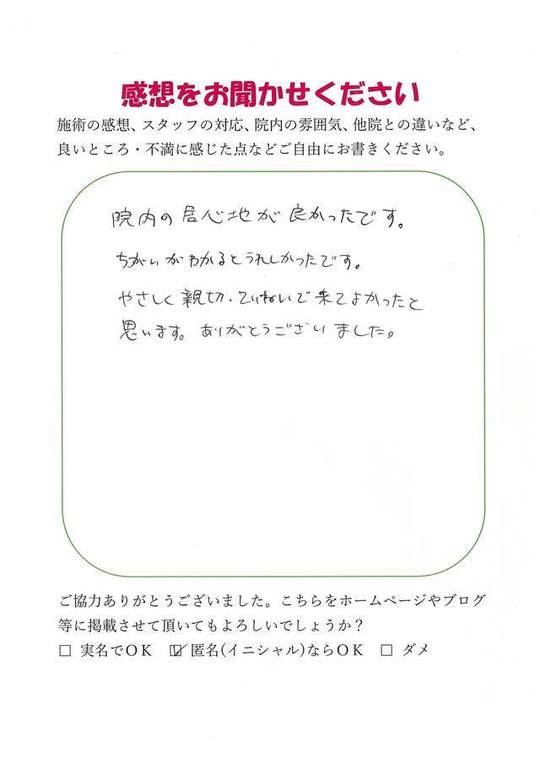 やさしく親切、ていねいで来てよかったと思います。