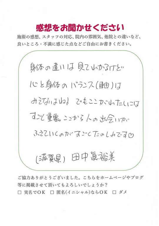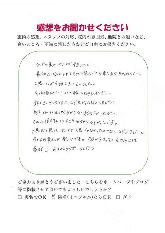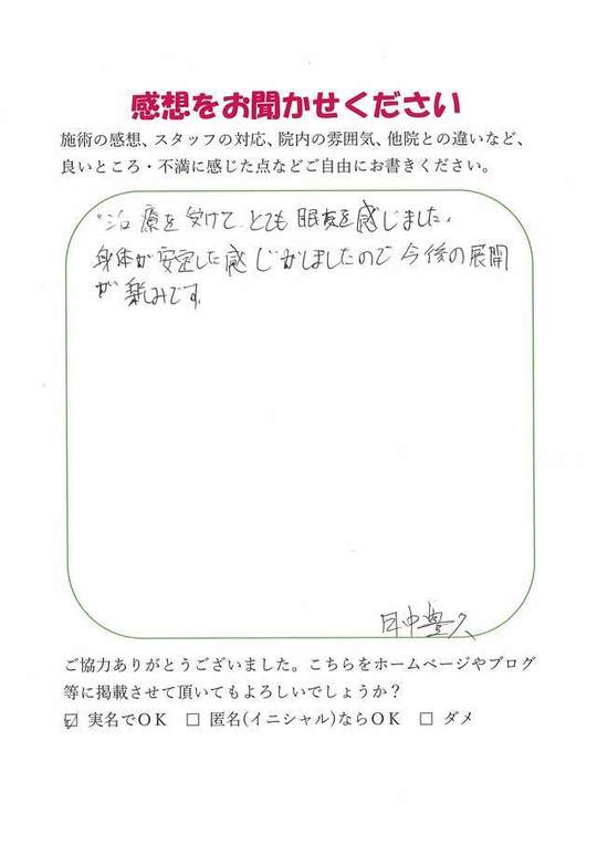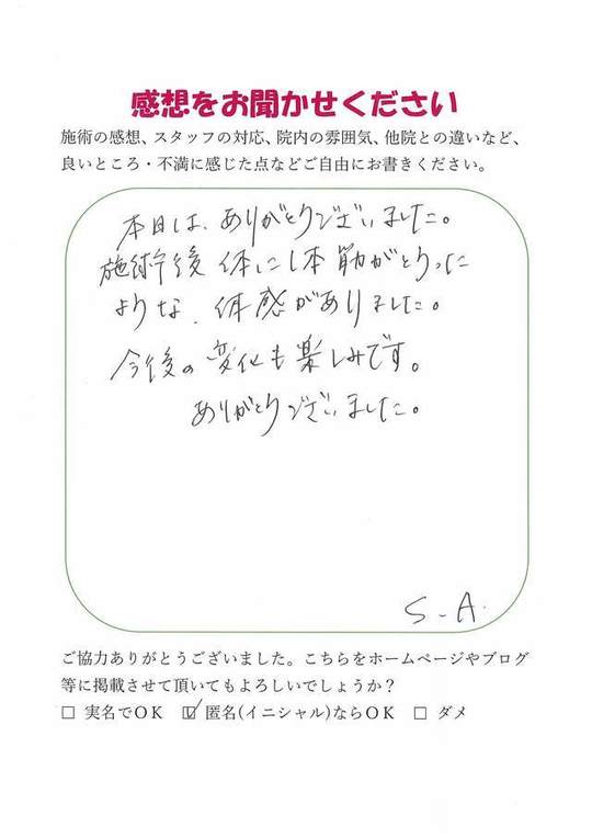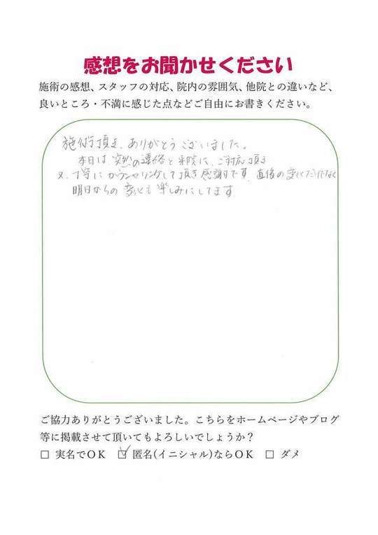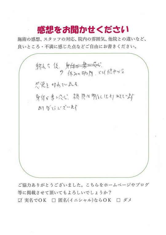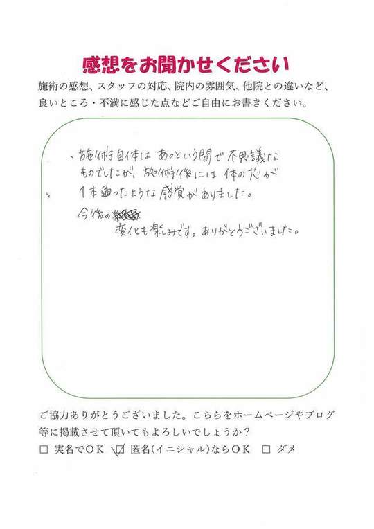 施術頂き、ありがとうございました。