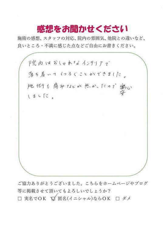 雰囲気も良く、落ちついた院内で、清潔感があり、気くばりを感じました。