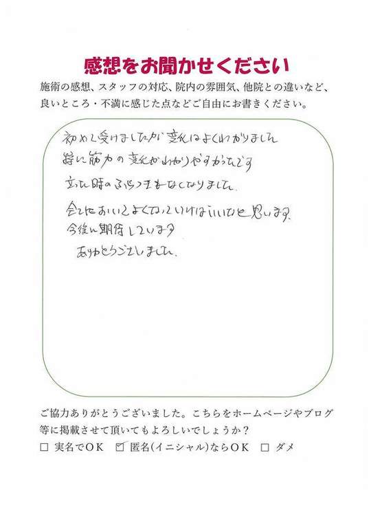 施術後に行った力の(検査の)変化に驚きました。
