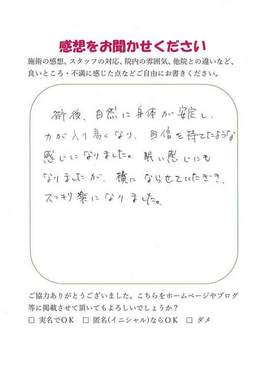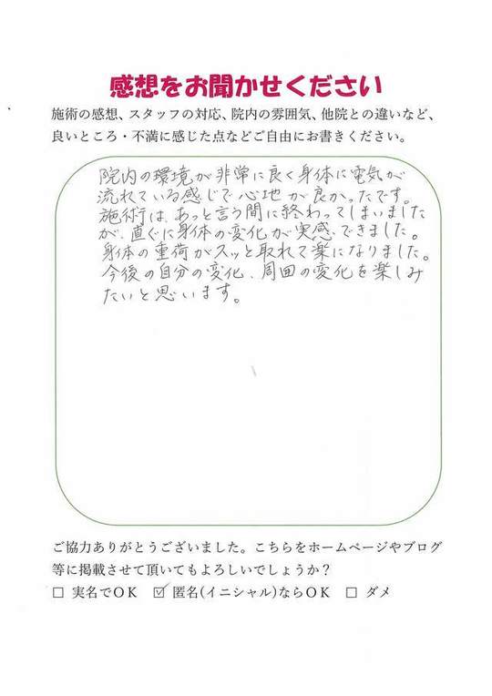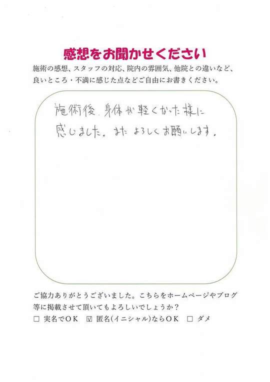 施術後、軽くなった様に感じました。