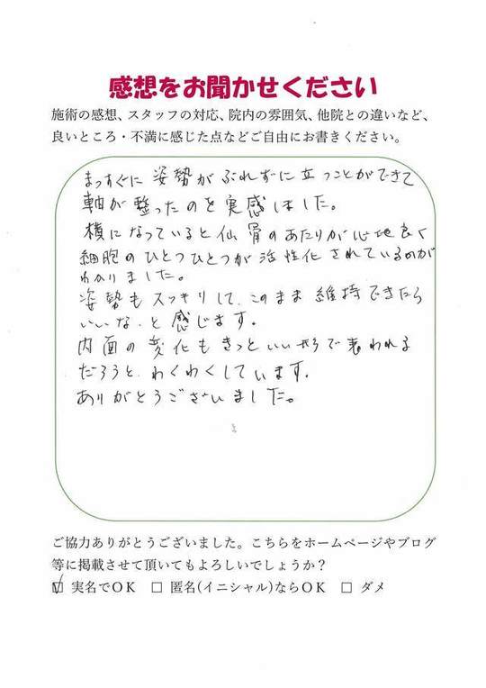 実際に身体の軸が整い、いいことをして頂いたということがわかりました。