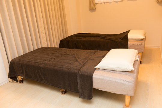施術が終了した後はこちらのベッドで横になり、30分~60分の休息をとって頂きます。身体に充電されたエネルギーが逃げないよう、ベッドにちょっとした工夫をして体に大きな影響を与える磁場を整えています。その話はまた休息中にでも。